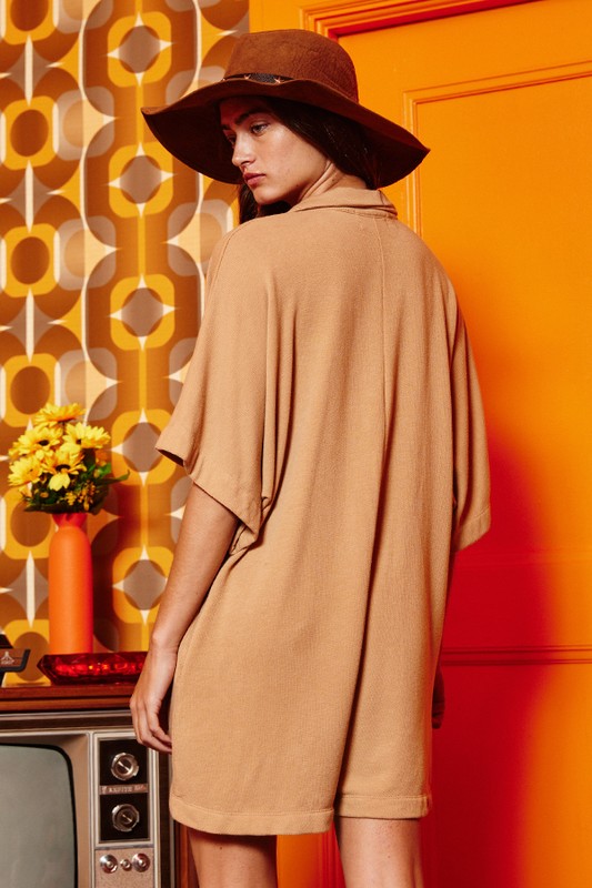 The Regan Romper is a stylish and comfortable piece for everyday wear. This relaxed-fit romper features an oversized sleeve, a collared neckline, a unique front bottom detail, and side pockets that add a smart finish. Make a statement while staying comfortable all day long!