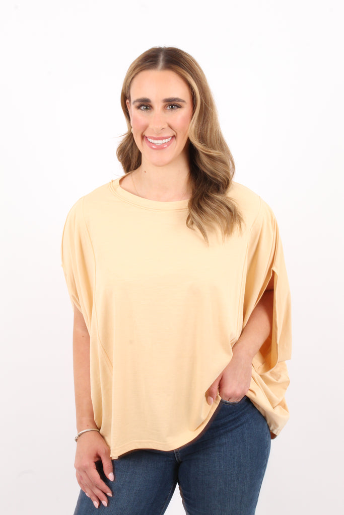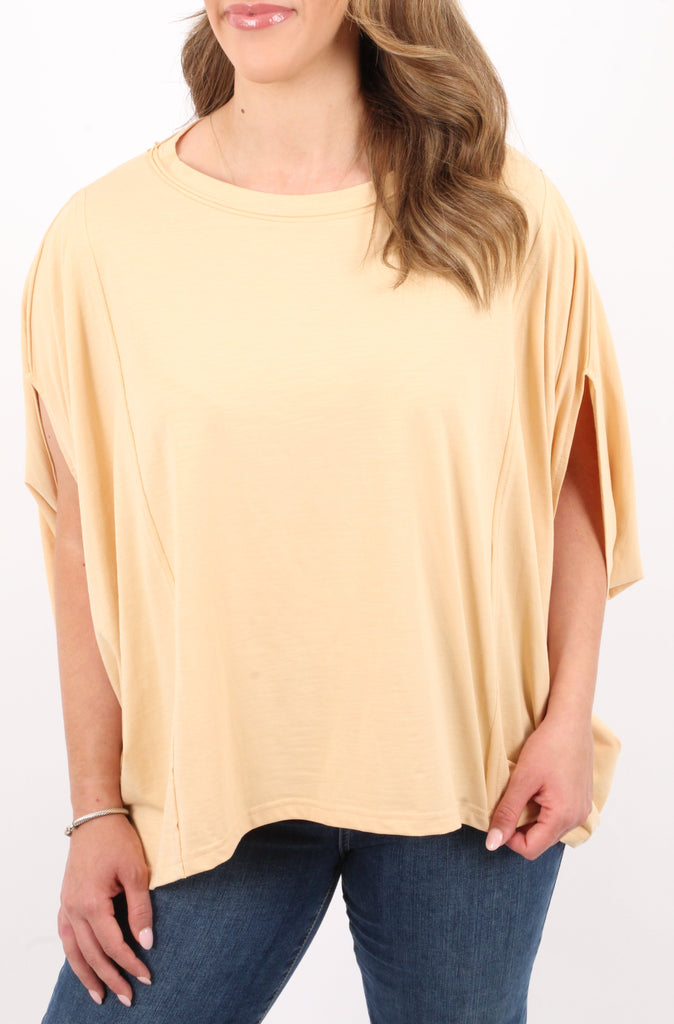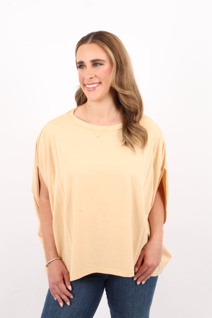 The Summer Days Top features a classic round neckline and stylish raw hem detail, paired with comfortable bat wing sleeves. Perfect for a casual day out or dressing up for a special occasion. Stay cool and fashionable in this must-have top.