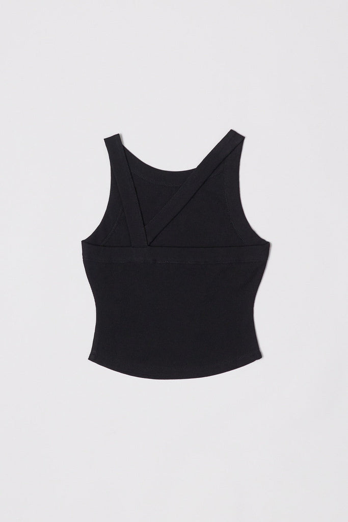 The Alyssa Top is a fitted racerback tank top that is made from a cotton-rayon-spandex blend. It's detailed with an asymmetrical strappy back for added style. The perfect tank to wear alone or layered!